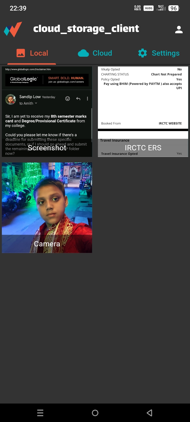- Main tab layout with Local/Cloud/Settings tabs